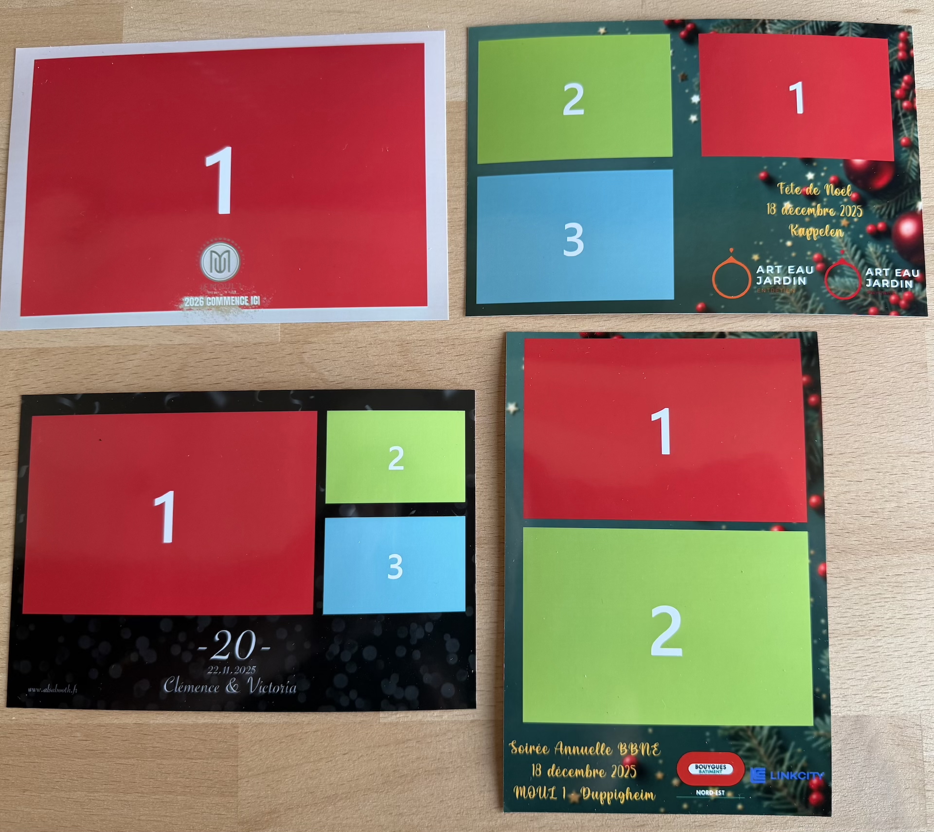 Quelques exemples de templates réalisés par nos soins. Ce type de maquette sera personnalisée selon vos envies/attentes/thèmatique d’évènement. La maquette sera transmise en amont de l’évènement pour validation par vos soins.